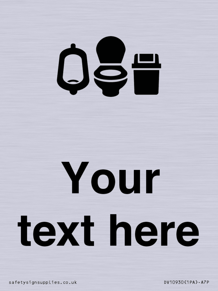 The design contains the symbol: i070 toilets urinals and wcs with sanitary bins, which either comes from the EN ISO 7010 library or has been generated to meet specific requirements.