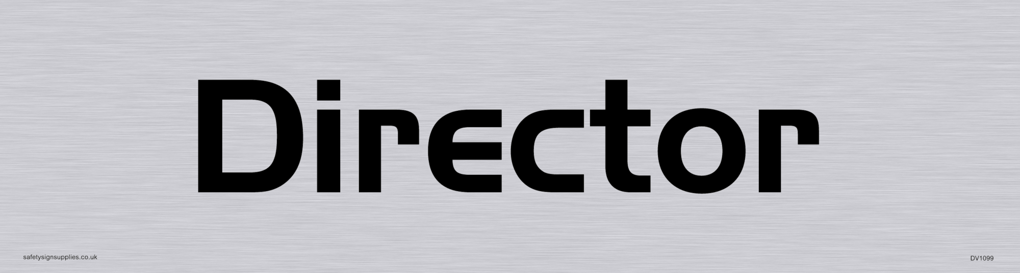 "architectural - director door sign with brushed metal finish / background, text in positive, black font - handel gothic"