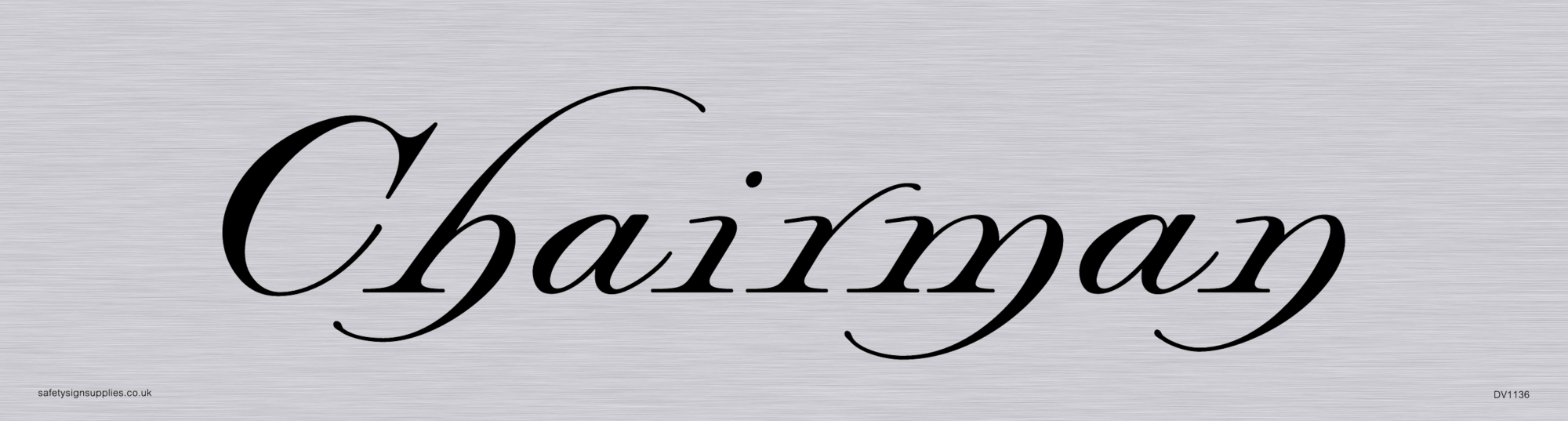 "architectural - chairman door sign with brushed metal finish / background, text in positive, black font - lordswish"