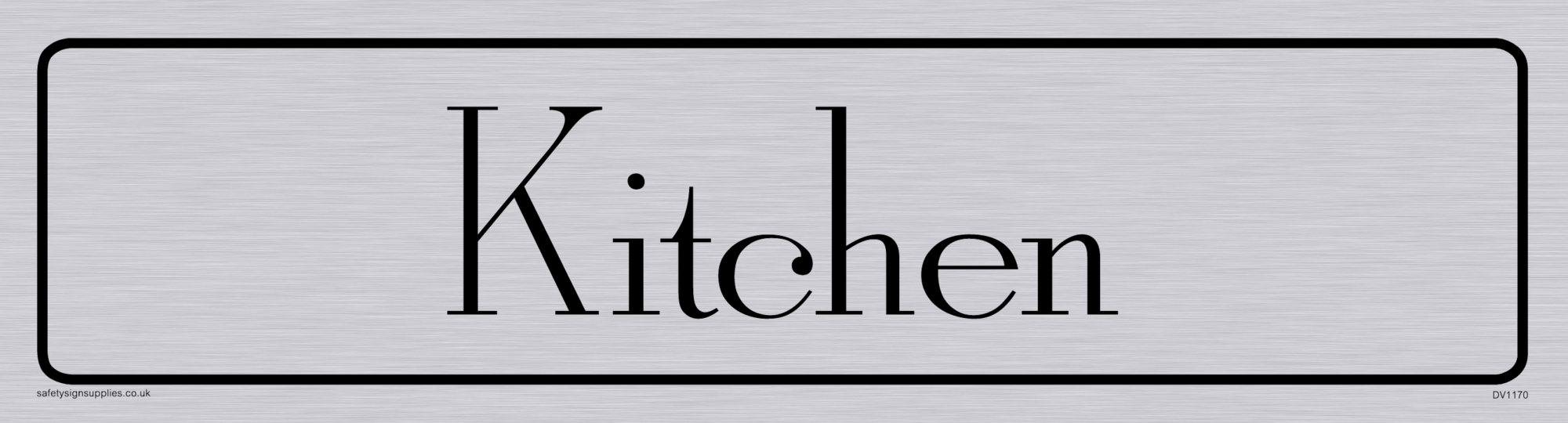 "architectural - kitchen door sign with brushed metal finish / background, text in positive, black font - antique roman"