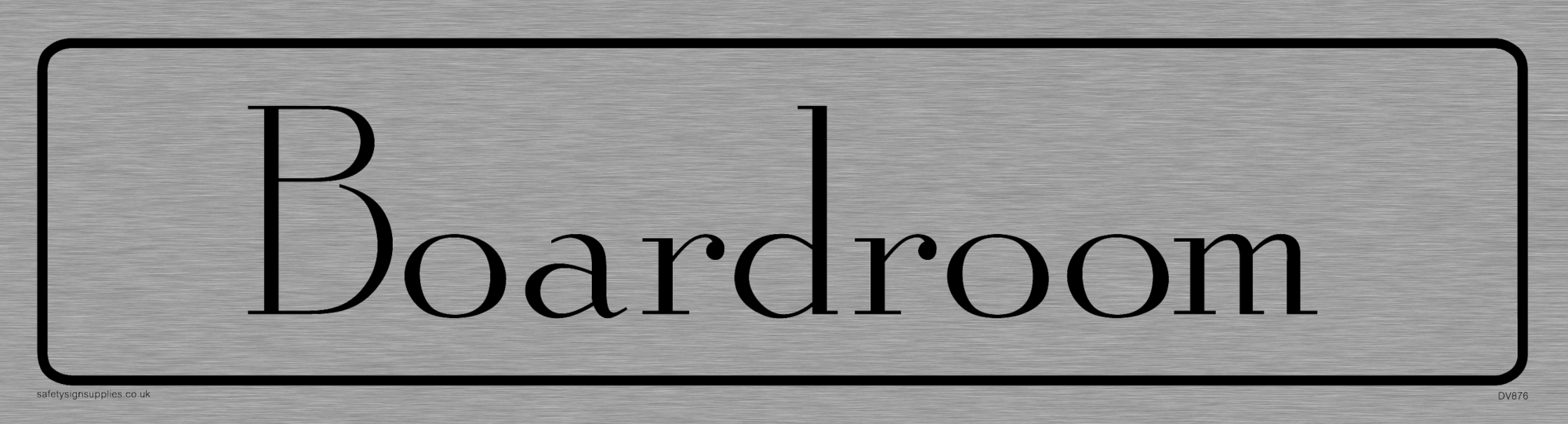 "architectural - boardroom office door sign with brushed metal finish / background, text in fine roman positive, black font - antique roman solid"