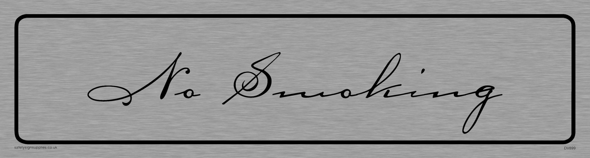 "architectural - no smoking sign with brushed metal finish / background, text in modern fine script positive, black font - caramel"