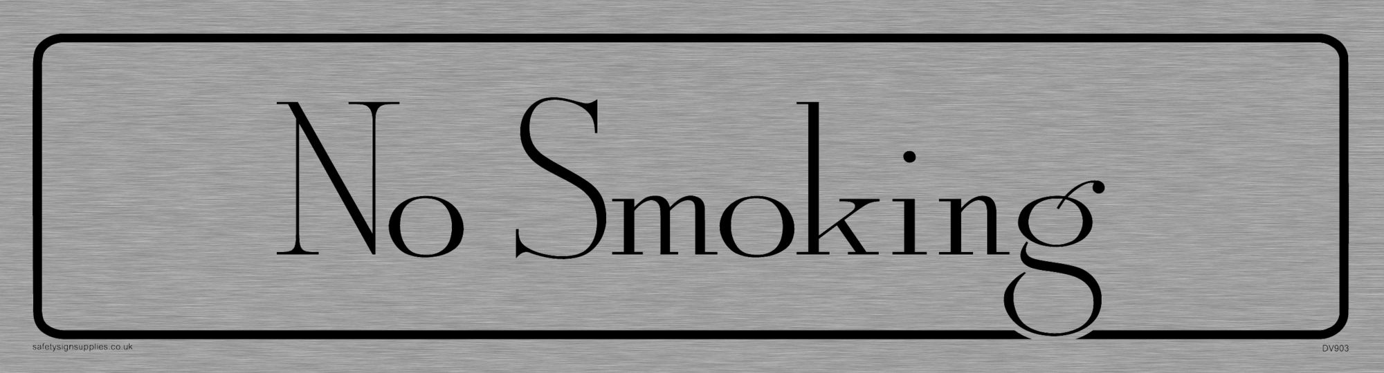 "architectural - no smoking sign with brushed metal finish / background, text in fine roman positive, black font - antique roman solid"