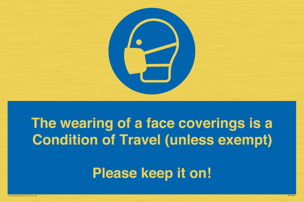 MP7564: The wearing of a face coverings is a Condition of Travel (unless exempt) Please keep it on!