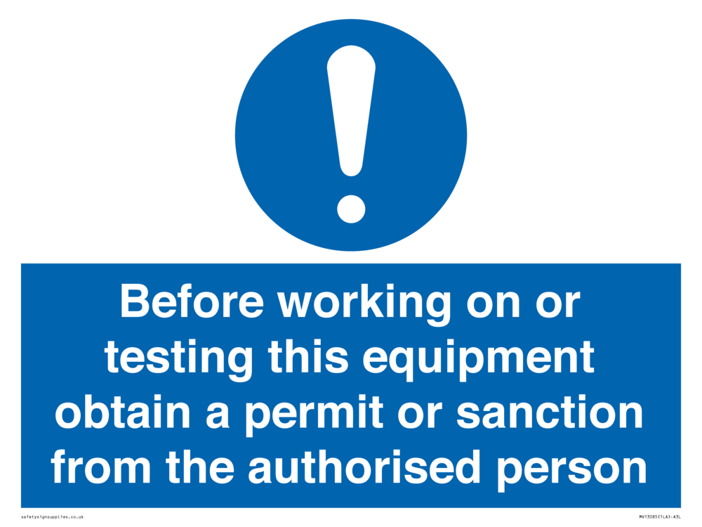 "Before working on or testing this equipment obtain a permit or sanction from the authorised person"