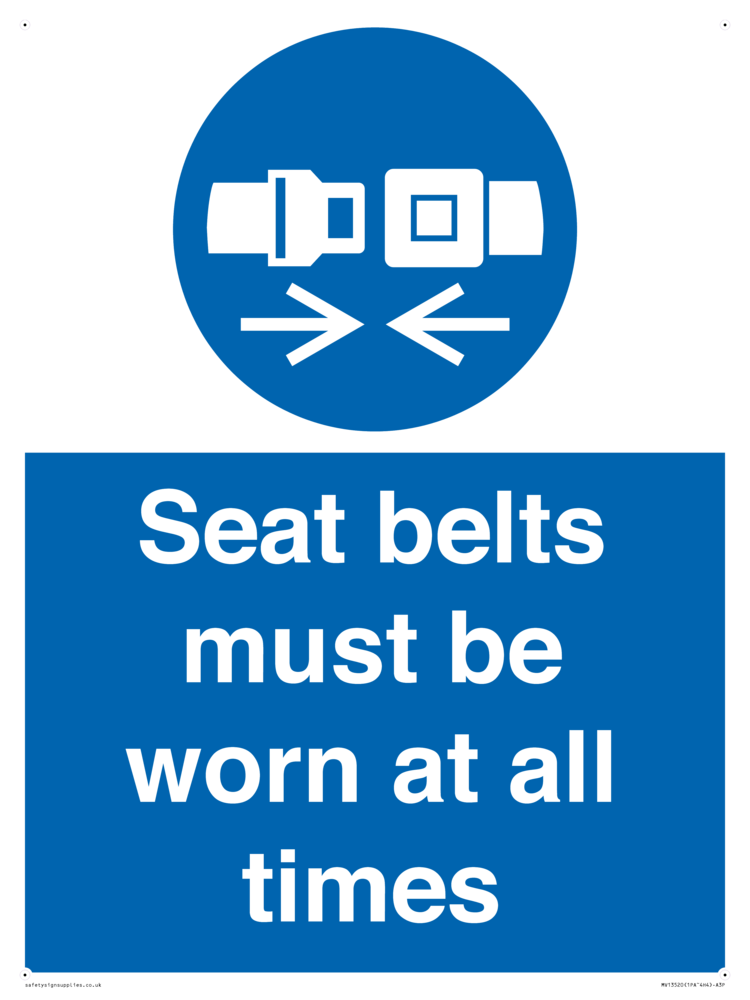 The design contains the symbol: m020 mandatory wear safety belts, which either comes from the EN ISO 7010 library or has been generated to meet specific requirements.
