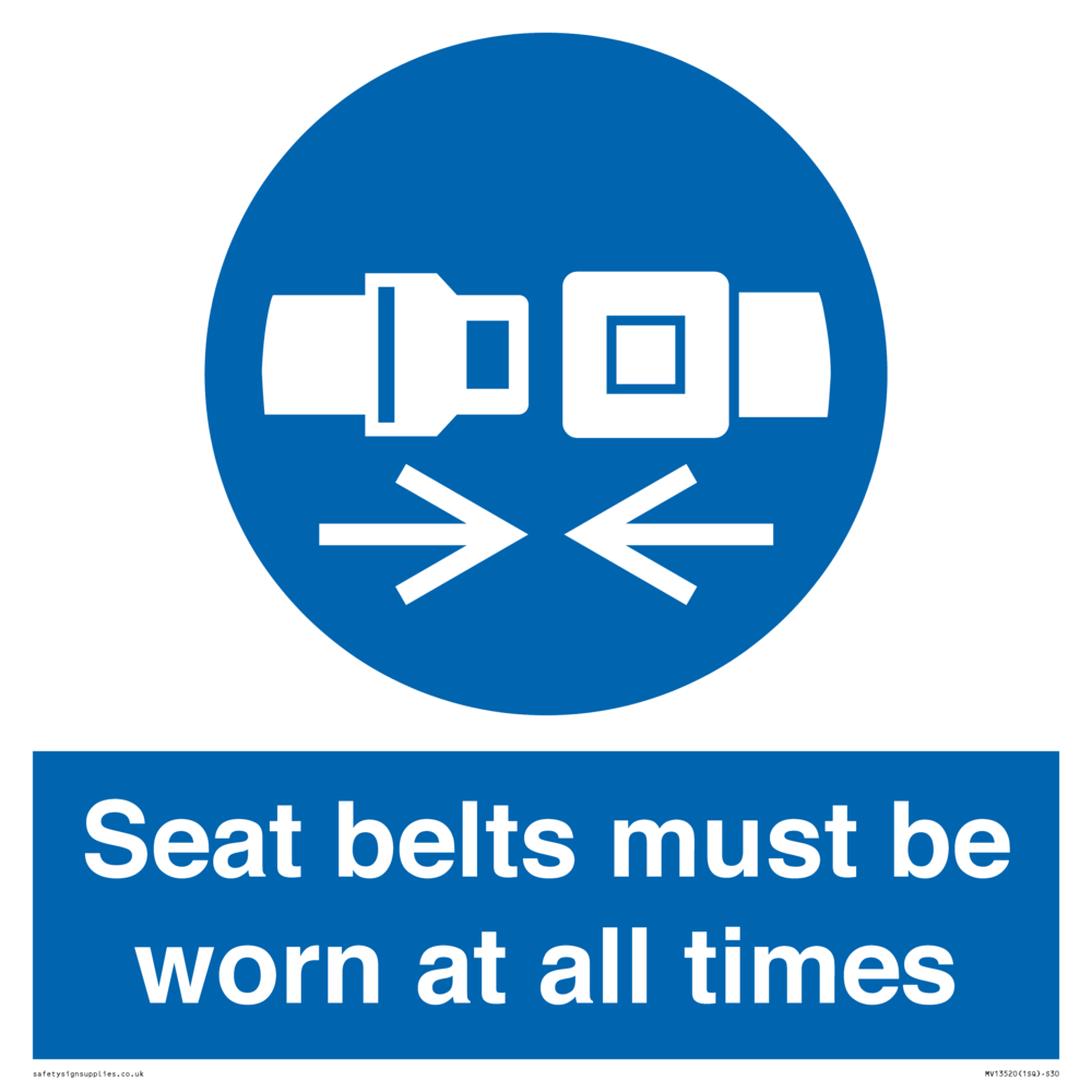 The design contains the symbol: m020 mandatory wear safety belts, which either comes from the EN ISO 7010 library or has been generated to meet specific requirements.