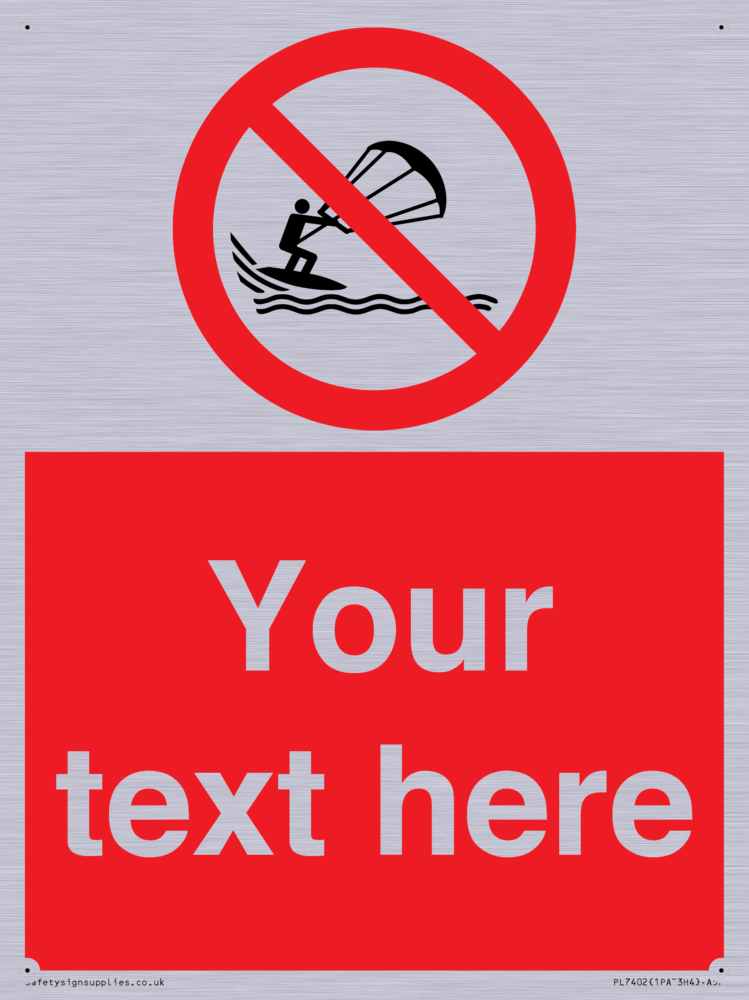 The design contains the symbol: p065 prohibition no kite surfing, which either comes from the EN ISO 7010 library or has been generated to meet specific requirements.