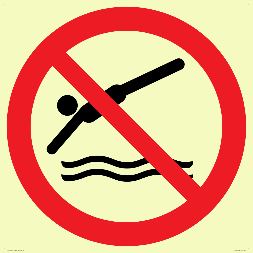The design contains the symbol: p052 prohibition no diving, which either comes from the EN ISO 7010 library or has been generated to meet specific requirements.