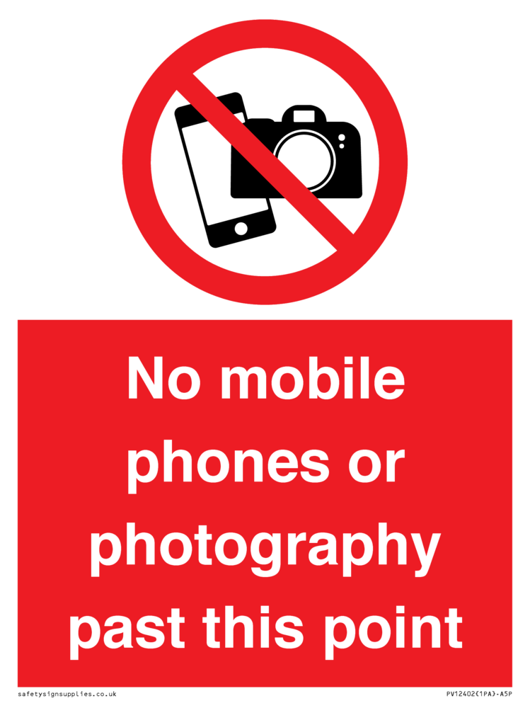 The design contains the symbol: p932 prohibition no filming or photography, which either comes from the EN ISO 7010 library or has been generated to meet specific requirements.