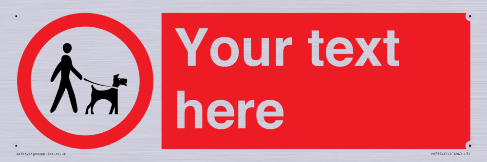 The design contains the symbol: rp901 road prohibition no dogs off lead, which either comes from the EN ISO 7010 library or has been generated to meet specific requirements.