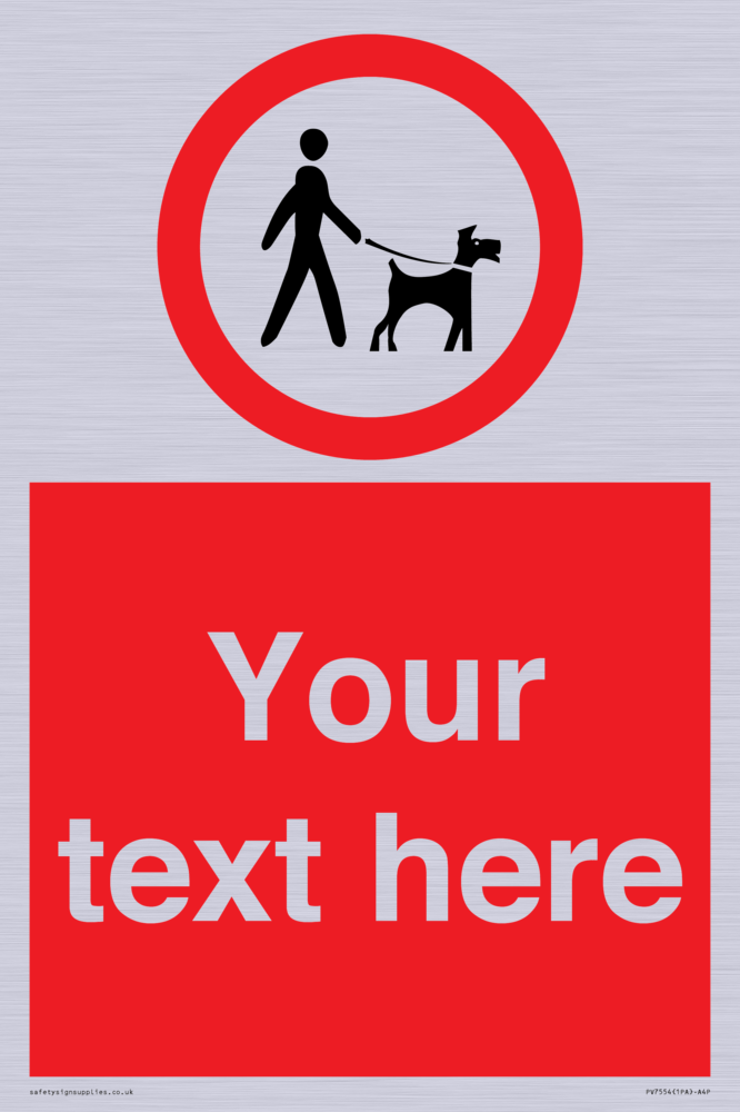 The design contains the symbol: rp901 road prohibition no dogs off lead, which either comes from the EN ISO 7010 library or has been generated to meet specific requirements.
