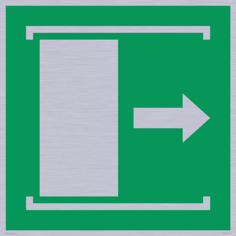The design contains the symbol: e033 safe condition door slides right to open, which either comes from the EN ISO 7010 library or has been generated to meet specific requirements.