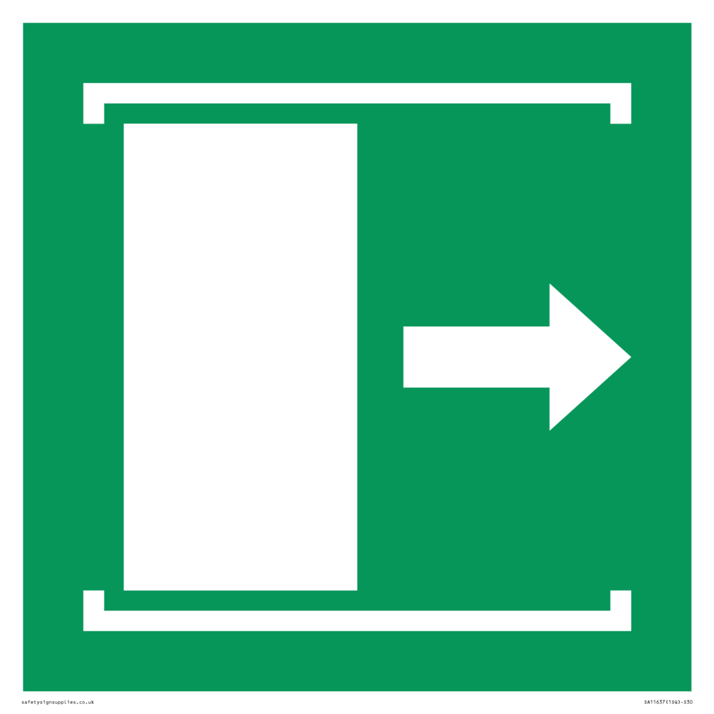 The design contains the symbol: e033 safe condition door slides right to open, which either comes from the EN ISO 7010 library or has been generated to meet specific requirements.