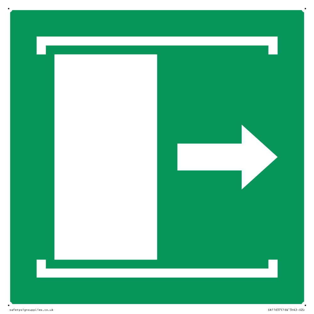 The design contains the symbol: e033 safe condition door slides right to open, which either comes from the EN ISO 7010 library or has been generated to meet specific requirements.