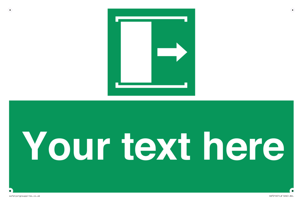 The design contains the symbol: e033 safe condition door slides right to open, which either comes from the EN ISO 7010 library or has been generated to meet specific requirements.