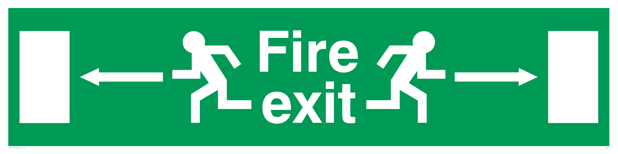 fire exit / emergency exit sign with arrows left and right with running man facing left & right - safety sign. This is an old standard Fire Exit sign, the new standard of EN7010 has replaced them. Only buy this if you are trying to match existing old standard signs in your business.