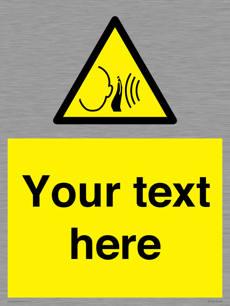 The design contains the symbol: w038 warning sudden loud noise, which either comes from the EN ISO 7010 library or has been generated to meet specific requirements.